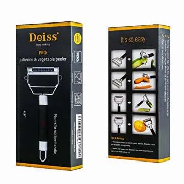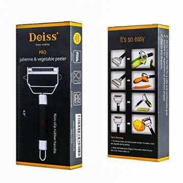 Deiss PRO Dual Julienne Peeler & Vegetable Peeler - Non-slip Handle - Apple Peeler & Potato Peeler, Orange Peeler, Zoodles Maker - Y Peeler, Veggie Peeler for Making Delicious Veggie Noodles
