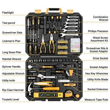 DEKOPRO 208 Piece Tool Set,General Household Hand Tool Kit, Auto Repair Tool Box with Plastic Toolbox Storage Case