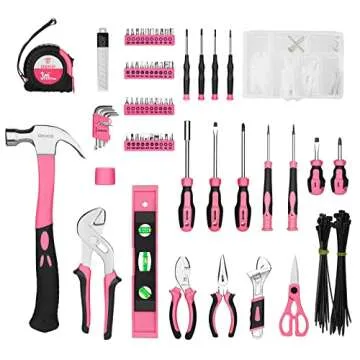 DEKOPRO Pink Tool Set, 180-Piece Pink Tool Kit for women, Home Repairing Tool Kit with Wide Mouth Open Storage Tool Bag, Household Hand Tool Set for DIY, Best Gifts and Basic Home Maintenance