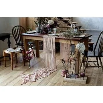 DekorFentezyKiev Table Runner 25x170 inches Cheesecloth Tablecloth for Romantic Wedding Rustic Boho Style Natural Elegant Gauze Decor (Rose Gold)