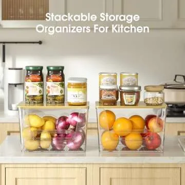 Delamu 2 Set Pantry organizers and Storage, kitchen organizers and storage with Bamboo Top, Stackable Kitchen Pantry bin for Onion,Potato,Fruits,Produce,Vegetable