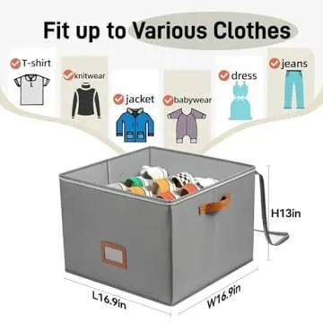 Delamu Shoe Organizer for Closet, Fabric Storage Bins with Lids/Clear Cover, Adjustable Dividers for Storage Bins/Bottom Support, Foldable Space-saving Closet Storaget, Ornament Storage, Grey