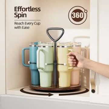 Delamu Water Bottle Organizer for Stanley Cup Organizer Holder Tumbler Storage with Wooden Turntable Base, Detachable Handle for Easy Carry, Stanley Cup Accessories for Stanley 40 oz 30 oz 20 oz