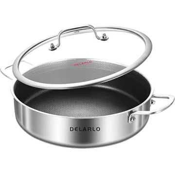 In a sea of cookware options, the DELARLO sauté pan truly shines when compared to competitors like Hexclad and T-fal. While many brands emphasize their ceramic coatings or unique heating technologies, the DELARLO pan is noted for its thick, durable non-stick surface that withstands rigorous use without losing performance. Users have expressed that the DELARLO pan has better heat retention and distribution, consistently outperforming its competitors, allowing meals to cook evenly without any hotspots.