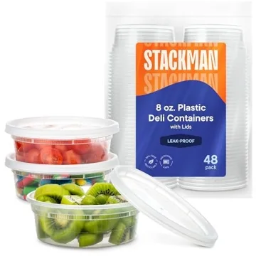 Show moreIntroducing our Deli Containers with Lids - a versatile solution perfect for meal prepping, storing food, or even for slime enthusiasts! This 48-set of 8-ounce disposable plastic containers is ideal for both home and food service businesses. Their compact size and sturdy design make them perfect for soups, stews, small deli portions, and even for saving those leftovers from your favorite meals. These containers aren’t just any ordinary storage solution; they provide an airtight seal that ensures maximum freshness, allowing you to take your meals directly from the fridge to the microwave without fear of losing taste.