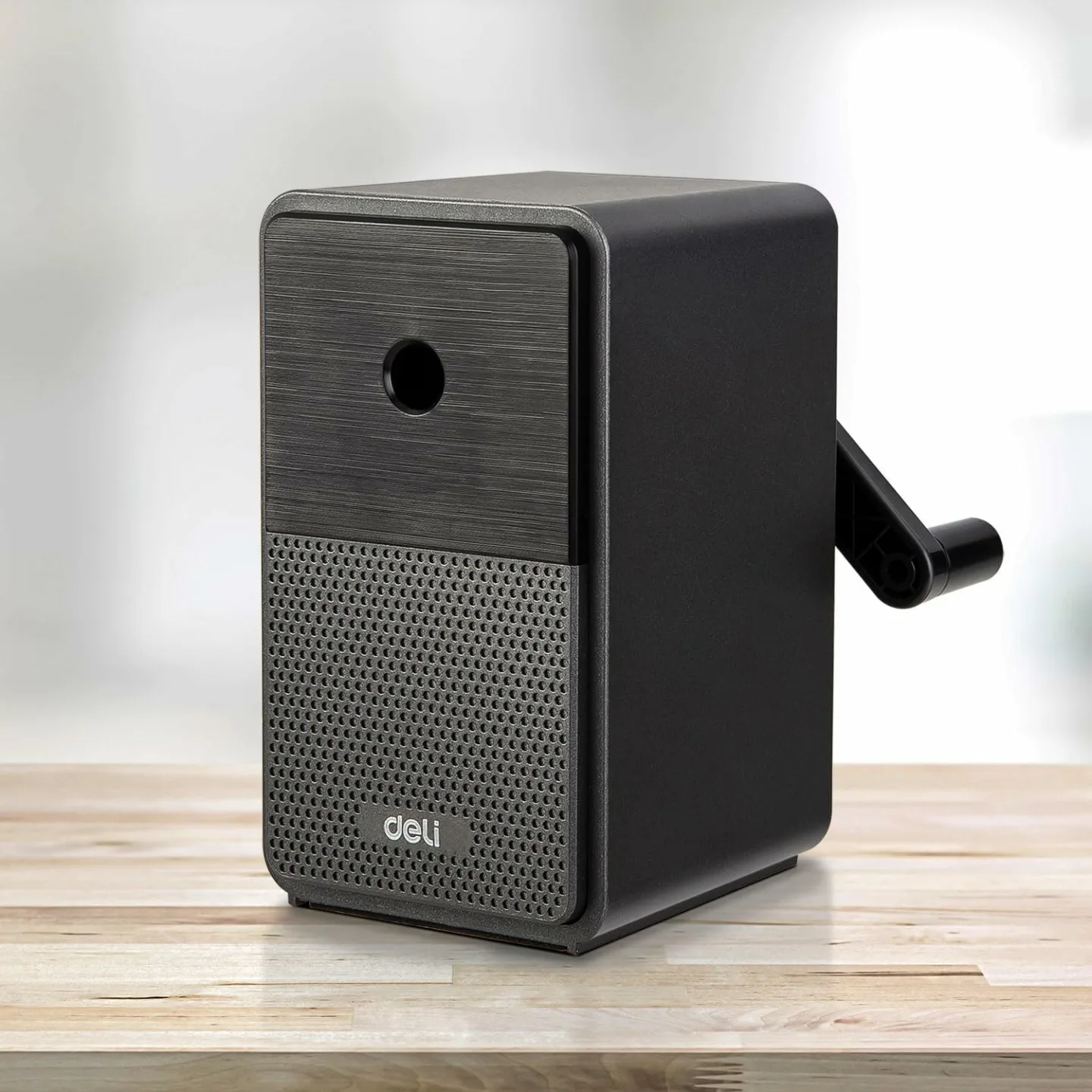 Deli Manual Pencil Sharpener - Hand Crank, Adjustable Point, Black for Classroom & Home