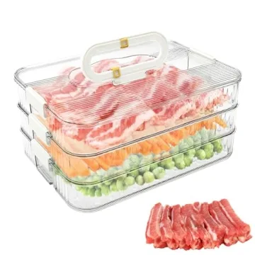 Compared to other deli storage solutions on the market, our 3-layer stackable container stands out due to its ergonomic design and superior sealing capability. Many competitors lack the thoughtful features like the expiration date dial and efficient organization system. Our product is tailored specifically for those who demand high functionality and quality, providing a more user-friendly experience for maintaining fridge organization without compromising freshness.