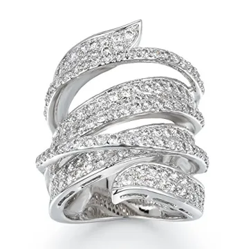 Delicin Jewelry Rhodium Plated Cubic Zirconia Wide Band Cocktail Ring