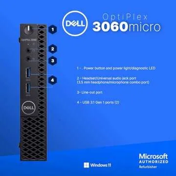 Show more Introducing the Dell OptiPlex 3060 Mini PC, your ultimate solution for powerful computing without sacrificing space. Perfectly engineered for both home and office environments, this compact micro desktop computer boasts a sleek design that fits seamlessly into tight workspaces while delivering exceptional performance. Harnessing the power of an Intel Core i5 8th Gen Hexa-Core processor (i5-8500), it ensures that you can tackle everyday multitasking with ease. Equipped with 16GB DDR4 RAM and a fast 500GB SSD, this PC minimizes load times and enhances your overall productivity, turning any work session into a smooth experience. With Windows 11 Pro pre-installed, you gain access to a suite of advanced features designed for security in both business and personal use. Plus, with built-in Wi-Fi and Bluetooth, remain connected wirelessly regardless of your activities.