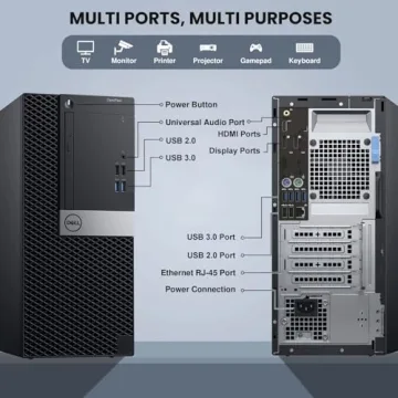 Show more Introducing the **Dell Tower Desktop PC**, designed to elevate your home, office, and gaming experience. This powerful computer is fitted with an **Intel Core i5-6500 6th Gen processor**, providing a robust performance boost with a base clock speed of 3.2GHz, which can reach up to a stunning 3.6GHz with its Turbo Boost technology. Whether you’re multitasking between applications or diving into a thrilling game, this desktop is engineered to handle it all seamlessly. Coupled with **16GB DDR4 RAM**, it ensures smooth operation and faster load times, allowing you to switch between tasks effortlessly.