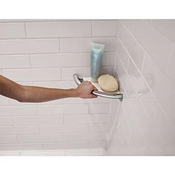Delta (1-Pack) Wall Mount Corner Shelf with Assist Bar ADA Compliant Polished Chrome 8-1/2' Bathroom Safety Handle | 300 lb Capacity, Balance, Handicap Grip DF702PC