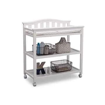 Changing table includes two fixed shelf for open storage Strong & sturdy wood construction