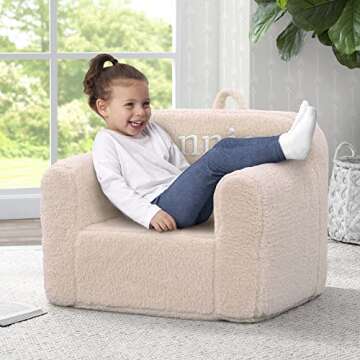Delta Children Cozee Sherpa Chair – Customize with Name – Foam Kids Chair for Ages 18 Months and Up, Cream