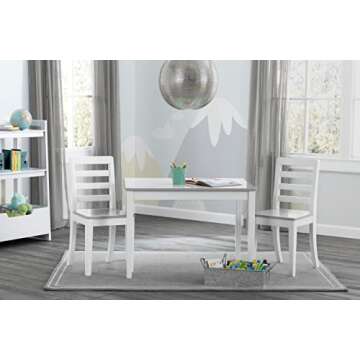 Delta Children Gateway Table and 2 Chairs Set - Greenguard Gold Certified, Bianca White/Grey