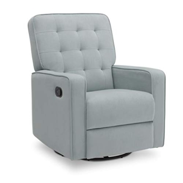 Show more Introducing the Delta Children Gavin Recliner Glider Swivel Chair, a beautifully crafted piece of furniture designed for ultimate comfort and style. This recliner is upholstered in LiveSmart Fabric by Culp, known for its exceptional cleanliness and durability. The fabric is not just stain-resistant but also repels moisture, making it perfect for homes with kids and pets. With its gentle glide motion complemented by a soothing swivel action, this chair offers a delightful experience whether you're nursing a baby or simply unwinding after a long day. Measuring at a size of 30"L x 35.5"W x 41"H, the chair is designed to fit seamlessly into your nursery or living room without overwhelming the space. The sturdy frame ensures stability, and the pocketed coil spring seat cushion provides long-lasting comfort and support for hours of use.