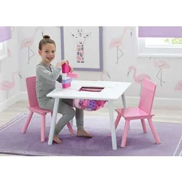 Delta Children Kids Table and Chair Set with Storage (2 Chairs Included), White/Pink