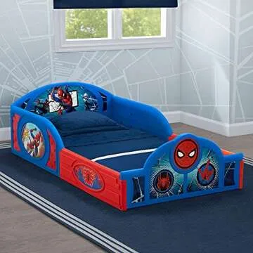 Delta Children Marvel Spider-Man Sleep and Play Toddler Bed with Built-in Guardrails