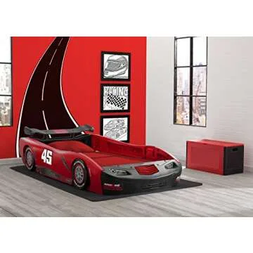 Show moreDelta Children Sport Race Car Twin Bed is the perfect sleeping solution for your little speedster! Designed with the spirit of racing in mind, this twin bed features a stunning cool race car look, making it an exhilarating centerpiece for any child’s bedroom. Your child will love the aspiration and excitement that comes with the classic design enriched by realistic details such as the front grille, wheels, and racing decals. This bright red bed not only serves as a functional piece of furniture but also transforms the room into a thrilling racetrack!