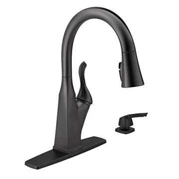 Show moreIntroducing the Delta Everly Single-Handle Pull-Down Sprayer Kitchen Faucet with innovative ShieldSpray Technology, designed to revolutionize your kitchen experience. This exquisite faucet comes in a contemporary matte black finish, perfectly blending with any modern kitchen decor. The single handle design allows for seamless adjustment of water flow and temperature, enabling effortless use during your busy kitchen tasks. With the convenient pull-down sprayer, you can easily switch between a steady stream and a powerful spray to tackle everything from rinsing vegetables to cleaning dishes.