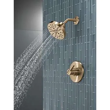 Delta Faucet Nicoli 14 Series Single-Handle Gold Shower Faucet, Shower Trim Kit with 5-Spray H2Okinetic Shower Head, Champagne Bronze 142749-CZ (Shower Valve Included)