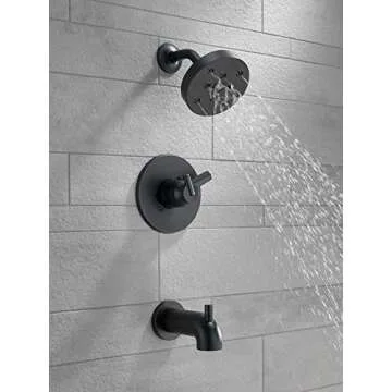 Delta Faucet Trinsic 17 Series Dual-Function Tub and Shower Trim Kit, Shower Faucet, Single-Spray H2Okinetic Shower Head, Matte Black T17459-BL (Valve Not Included)