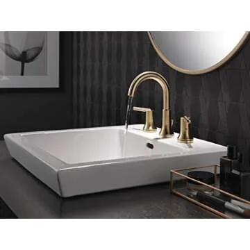 Delta Faucet Trinsic Widespread Bathroom Faucet 3 Hole, Gold Bathroom Faucet, Diamond Seal Technology, Metal Drain Assembly, Champagne Bronze 3559-CZMPU-DST