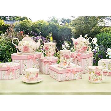 While the teapot is sold separately, matching teacups are available for purchase from the same collection.
