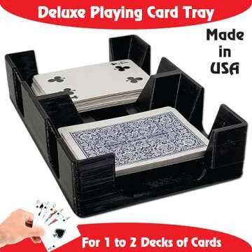 Show more Introduce a new level of convenience and style to your card games with our deluxe 2-Deck playing card tray! Crafted from high-quality thermoplastic in the USA, this tray stands out for its superior durability and resistance to abrasion and impacts, making it a long-lasting addition to your game night essentials. Unlike cheaper import trays, our product promises a robust design that can withstand the rigors of enthusiastic gameplay.