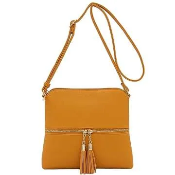 DELUXITY Lightweight Medium Crossbody Bag with Tassel (Mustard)
