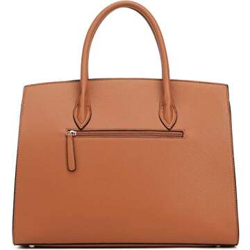 DELUXITY Women's Designer Top Handle Satchel Handbag Tote Bag Briefcase 2pc set | Tan