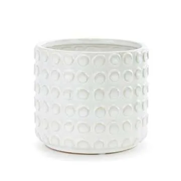 DEMDACO Dimple Glossy White 6 x 6 Ceramic Stoneware Decorative Container Vase Planter