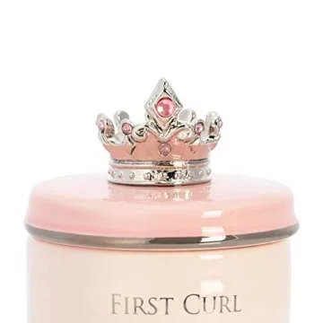 DEMDACO First Tooth and Curl Pink Ceramic Stoneware Children's Stackable Keepsake Box, 1 Count (Pack of 1)