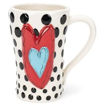 Show moreIntroducing the DEMDACO Tracy Peche Black Dots Heart Mug—a stunning blend of artistry and functionality that elevates every sip. This glossy stoneware mug, adorned with charming black dots scattered across a pristine white background, features a delightful red and blue heart design that adds a cheerful touch. Perfect for celebrating life’s special moments or simply enjoying your favorite beverage, this mug holds approximately 15 ounces of your chosen hot or cold drink. Measuring approximately 5.5 inches high, it is large enough for a generous serving, yet perfectly designed to fit comfortably in your hand.