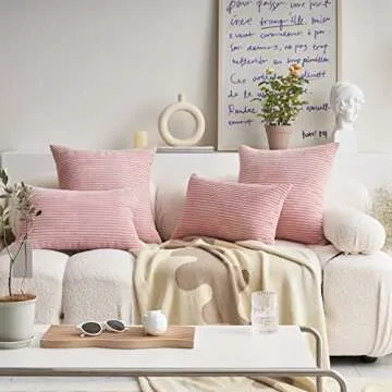 Demetex 18x18 Pillow Covers Pink Striped Corduroy Pillowcases Decorative Square Throw Pillows for Couch Bedroom Wedding, Set of 2, 18 x 18 inch, Light Pink