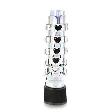 Demonia SWING-230 Women's Mid-Calf & Knee High Boots, Silver Hologram, 9