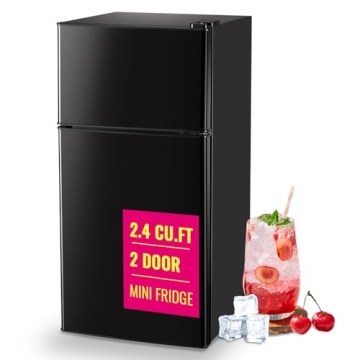 Compact 2.4 Cu.ft Mini Fridge - Top Freezer, Dual Door, Black