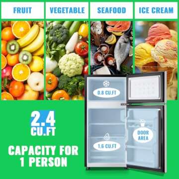 DEMULLER Mini Fridge with Freezer, 2.4 Cu.Ft Personal Refrigerator Only for One Person Use, Silver Tiny Small Size Refrigerator with 7 Level Adjustable Temperature and Double Door