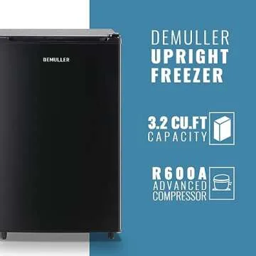 DEMULLER Upright Freezer 3.2 Cu.ft Freezer Single Door Freestanding Mini Freezer with Adjustable Thermostat Small Freezer for Kitchen, Apartment, Basement, Dorm, Black