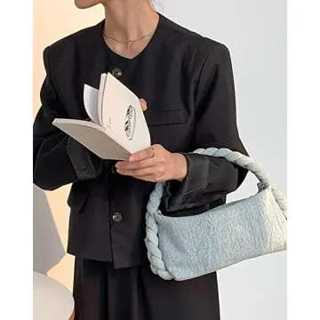 Stylish Handwoven Denim Tote Bag for Women Casual Crossbody Clutch