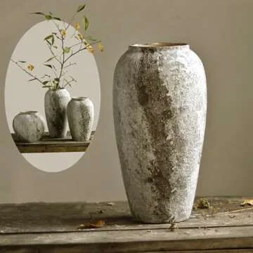 Denique Rustic Ceramic Flower Vase, Vintage Tall Floor Vase Farmhouse Decor, Large Vases for Living Room Entryway Table Centerpiece Decor, Terracotta Vases Pottery Clay Vase(C-35cm)