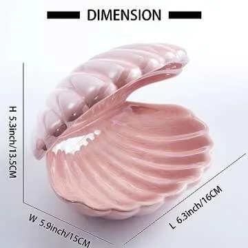 Denique Shell Jewelry Dish Tray, Ceramic Trinket Tray Clamshell Jewelry Storage Dish, Ring Holder Dish Key Bowl, Decorative Jewelry Plate, Cute Jewelry Organizer for Room Decor (Pink)