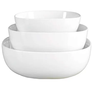 The 3-piece serving bowl set includes sizes tailored to your serving requirements: Small (7.5" diameter), Medium (9" diameter), and Large (10.5" diameter). Whether you're serving vibrant salads, hearty pasta dishes, or mouthwatering desserts, these bowls provide ample space and stability, enhancing the presentation of your culinary creations. Their pristine white finish is versatile enough to blend seamlessly with any table decor, accentuating the colors of your dishes while ensuring an elegant dining experience.