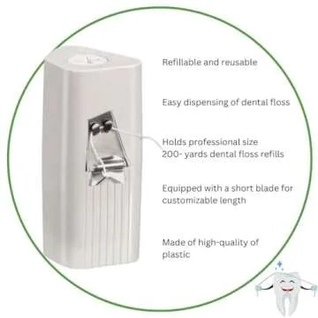 Dental Floss Dispenser - Dental Floss Holder, Dental Floss Dispenser Refillable- Bundled with Dental Floss Refill Spool Mint Waxed- 200 Yards Large Jumbo Floss Refills Set, White