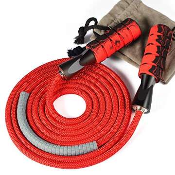 Denvosi Professional Jump Rope Workout, Overstriking Weighted Ball Bearing Weighted Cotton Rope Adjustable Length for Cardio, Endurance Training, Fitness Workouts, Jumping Exercise(Red)