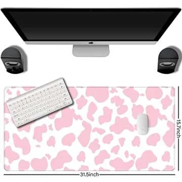 Deokke Extended Large Computer Gaming Mouse Pad Desk Mat - Pink Cow Design (31.5×15.7 in)
