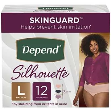 Show moreIntroducing the Depend Silhouette Adult Incontinence Underwear, specifically designed for women seeking both style and functionality. This product celebrates body confidence while providing maximum protection against heavier bladder leaks. With sizes tailored for a 40–52" waist, you’ll enjoy all-day comfort and discretion. Available in chic colors like black, pink, and berry, these underwear are not only practical but also designed to fit your lifestyle seamlessly.