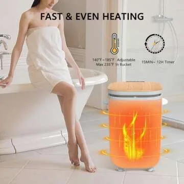 Show more DEPFALL 40L Towel Warmer Bucket is the ultimate luxury accessory that transforms your everyday bathing routine into a spa-like experience. Designed with a generous 40-liter capacity, it effortlessly accommodates oversized towels, bathrobes, and blankets up to 40" x 70", making it perfect for families and those who appreciate the finer things in life. With its elegant wood design, this towel warmer is not just functional but adds a touch of sophistication to your bathroom decor.