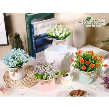 Show moreTransform your living space with the exquisite Der Rose 4 Pack Fake Flowers set. Tailored for those who appreciate elegance and low-maintenance decor, each of the four indoor potted artificial plants comes in delightful macaron colors that will effortlessly brighten your home or office. These stylish plants are not just visually appealing; they fill your surroundings with a fresh, welcoming vibe without the hassle of real plants. Measuring 6.5 inches tall, they are perfectly sized to decorate kitchen countertops, dining tables, or office desks without overwhelming the space.