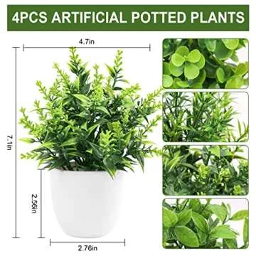 Show moreTransform your living space into a serene oasis with the Der Rose Faux Plants Indoor. This exquisitely crafted set of 4 round fake potted plants is an ideal solution for bringing a touch of greenery into your home without the hassle of maintenance. Designed with a modern aesthetic, each pot stands at 2.56 inches in height and 2.76 inches in width, while the lush foliage reaches a height of 7.1 inches and a width of 4.7 inches. Made from high-quality plastic, these plants not only look stunning but are also incredibly durable and resistant to fading. Plus, they are perfect for a variety of settings—from cozy apartments to bustling offices, and everything in between.