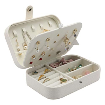 With high capacity, this jewelry holder features a bottom compartment equipped with 7 ring rolls for securely storing your rings and earrings. Cross bar dividers create 3 small compartments, easily removable to accommodate your bracelets as well. The middle section generously holds up to 10 pairs of earrings, while the top lid has 5 hooks coupled with a lower elastic pocket to keep necklaces and bracelets perfectly organized. Crafted from refined and soft suede material, the exterior boasts durable synthetic PU leather that withstands daily wear and tear, ensuring your jewelry stays protected in style.